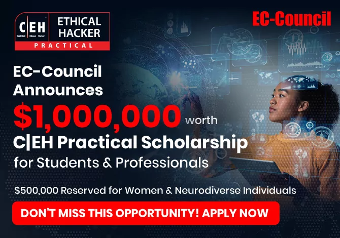 Summary: The Scholarship aims to encourage skill-building and preparation for C|EH Practical Exams. The scholarship has also reserved 50% of its funds for women and neurodiverse individuals to increase diversity and representation.
