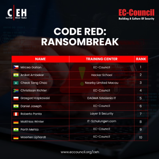 Tampa, Fla., February 24, 2026: EC-Council, inventor of the world-renowned Certified Ethical Hacker (CEH) certification, held the January 2026 CEH Compete challenge under the theme Code Red: RansomBreak. The scenario simulated a ransomware attack on a metropolitan hospital, requiring participants to respond to one of the most critical and time-sensitive cybersecurity incidents affecting the healthcare sector.