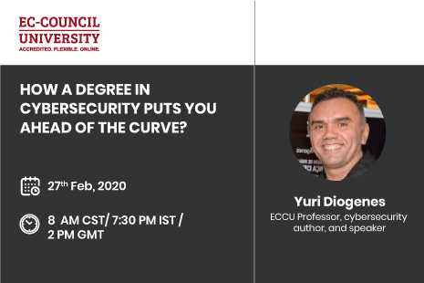 Speaker Yuri Diogenes,Designation: ECCU Professor, cybersecurity author, and speakerTopic: How a degree in cybersecurity puts you ahead of the curve?Date of Webinar: 27th Feb, 2020Time and Location: 8 am CST/ 7:30 pm IST/ 2 pm GMT Watch Now Speaker Bio: Yuri Diogenes has a Master of Science in cybersecurity intelligence and forensics investigation from…