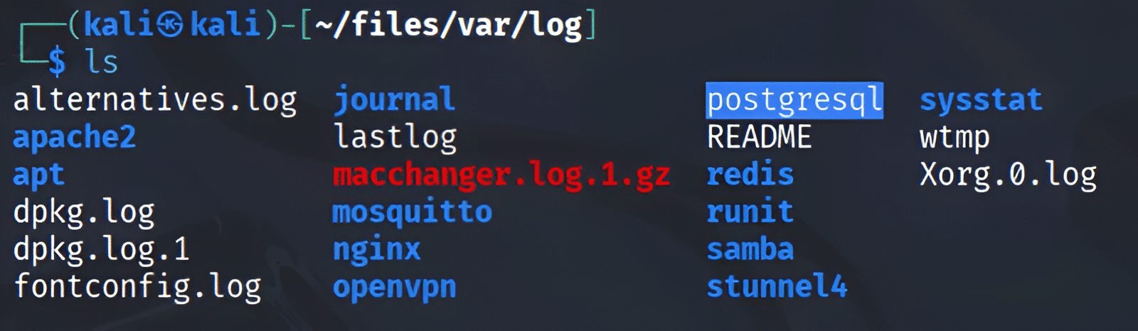 An example of sensitive data that could be exfiltrated is information in password folders or log files. In Linux, the log files are located in /var/log, a special directory for storing logs. This directory contains logs from the operating system, services, and various apps running on the operating system.