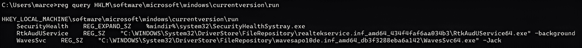 reg query HKLM\software\microsoft\windows\currentversion\run
