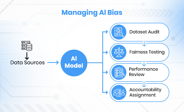 Clear accountability is essential. Bias governance fails when responsibility is diffuse or undefined. Program managers help ensure that ownership for ethical outcomes is assigned across data teams, business owners, and risk or compliance functions. Regular audits and review checkpoints reinforce accountability and help ensure that models continue to operate as intended during usage expansion.