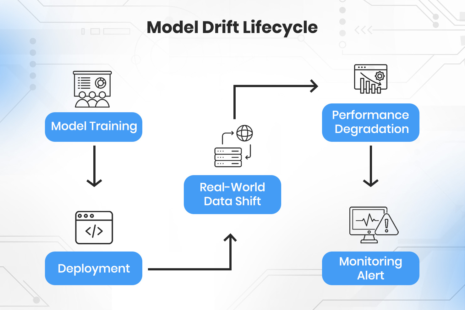 Model drift is one of the most common and least visible risks of AI systems. Model drift describes the performance degradation that occurs when a model’s production environment deviates significantly from its initial training dataset. These changes can happen gradually or suddenly. Customer behavior may evolve, market conditions may shift, or upstream systems may introduce new data formats or distributions. When this happens, model performance can decline even though the system appears to be functioning normally.