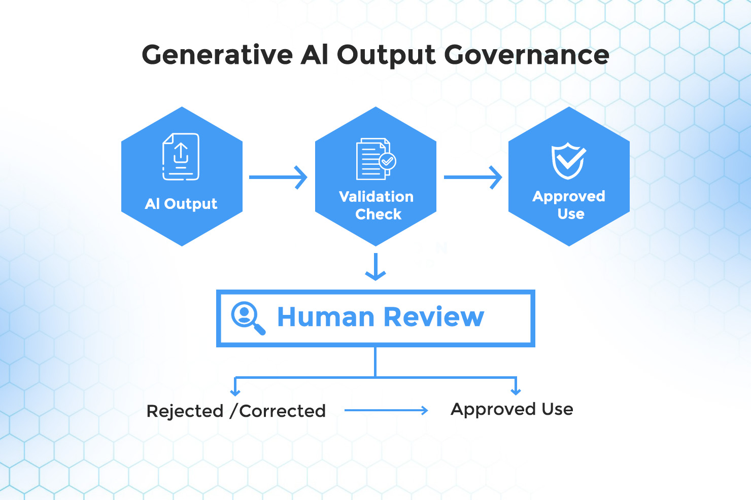 Output validation mechanisms provide additional protection. These may include requiring source references, implementing confidence indicators, or designing prompts that encourage the system to acknowledge uncertainty rather than inventing answers. Governance teams should also ensure that users are educated about the limitations of generative AI and understand that confident language does not guarantee correctness.