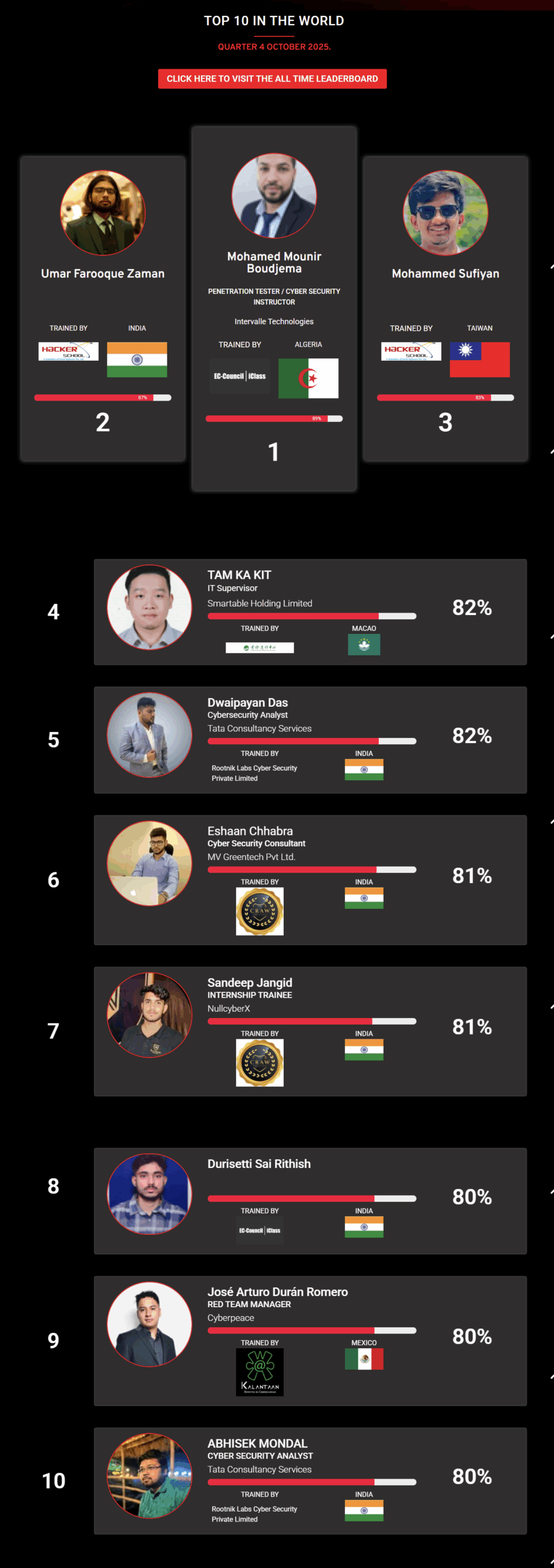 Being featured on the Global Ethical Hacking leaderboard is a privilege. Members receive wide coverage and cognizance from the cybersecurity community. You have now set the bar and it just got higher!