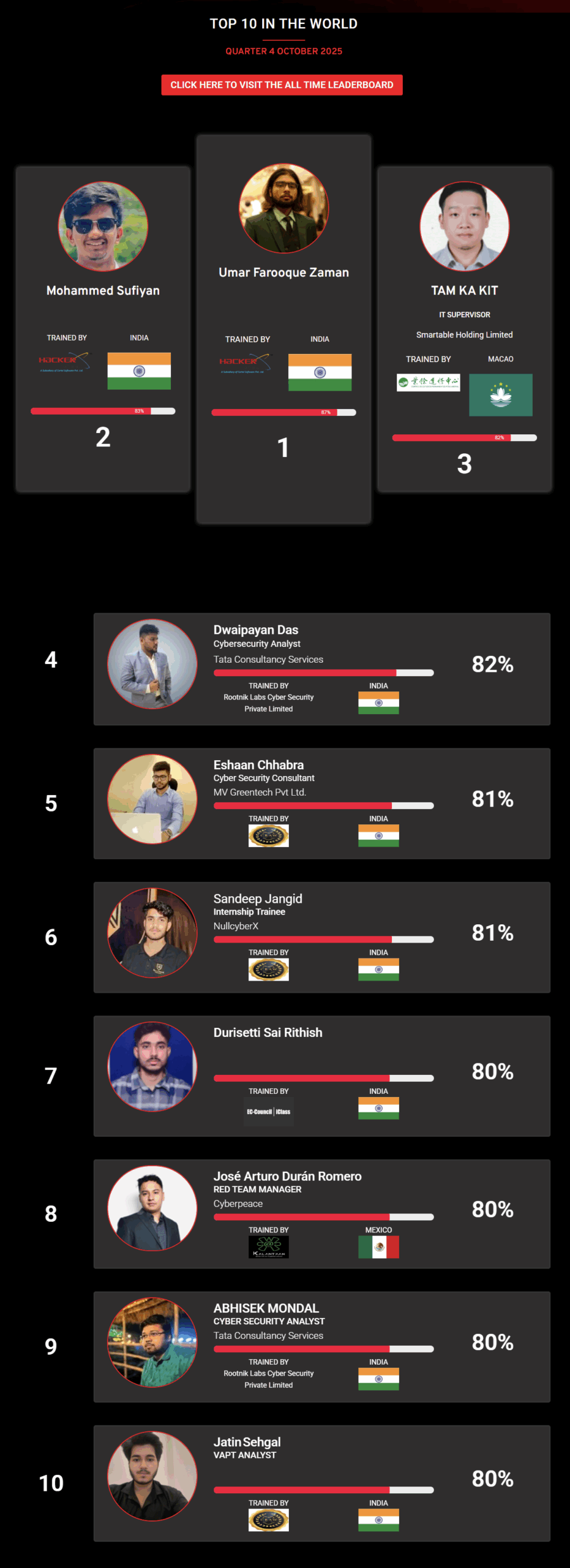 Being featured on the Global Ethical Hacking leaderboard is a privilege. Members receive wide coverage and cognizance from the cybersecurity community. You have now set the bar and it just got higher!